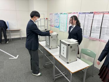 投票日は28日ですが、28日に投票できない一貫特進・特進コースの生徒たちが期日前投票をしています。
